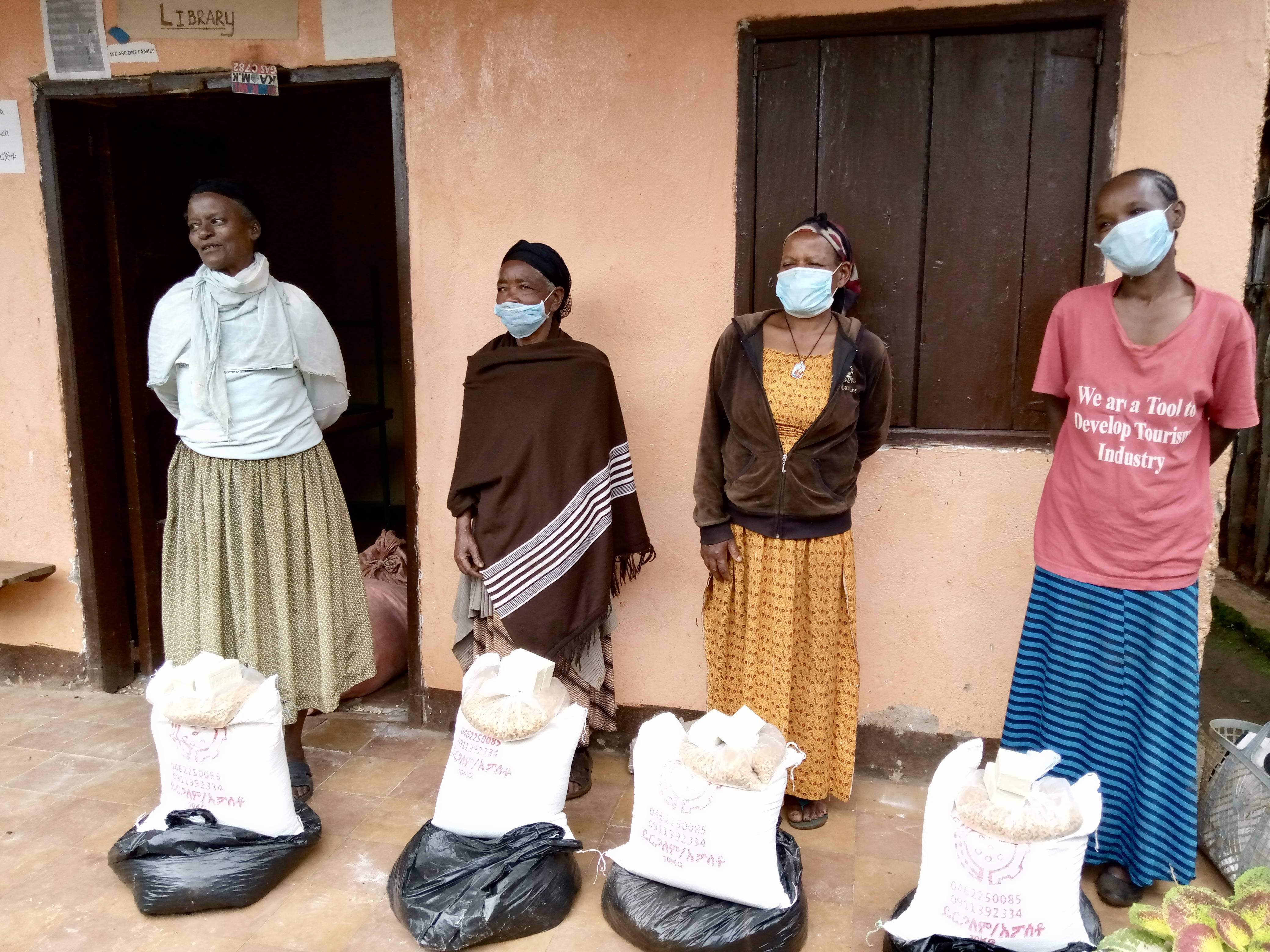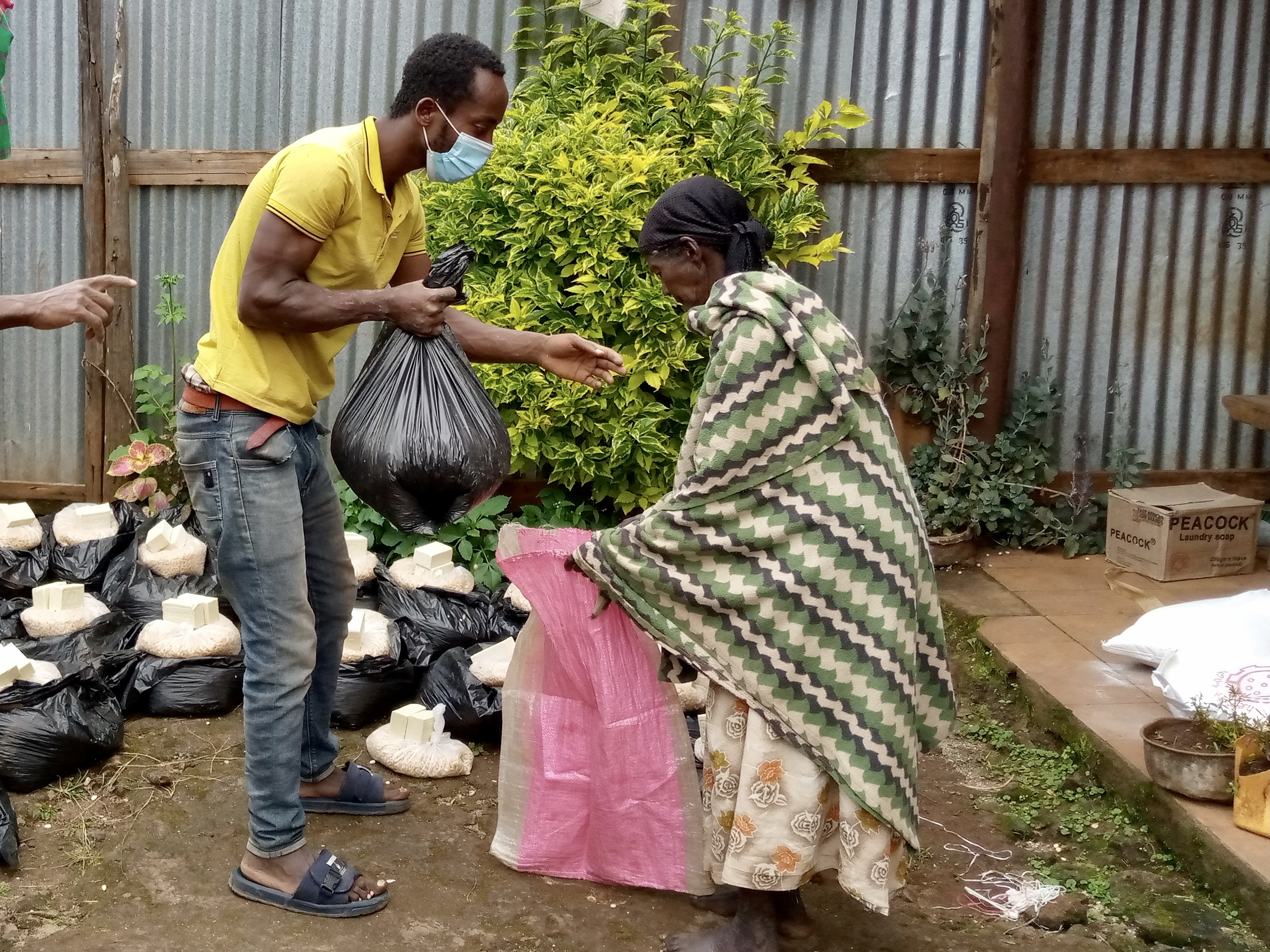 Marta is one of the women who is waiting in line. “I am thankful to be invited on the family support day today,” she says. “I left my job of baking and selling Injera due to COVID-19, and I wasn’t able to provide for my children and me. When I buy bananas for 12 cents then my children and I eat one banana in the morning and the rest of the bananas at night. From today, I have a hope for a better life. I am very thankful for everyone who is supporting this food distribution program. I want to say may you live long, healthy, and happy life!” She says, smiling on her wrinkled face.